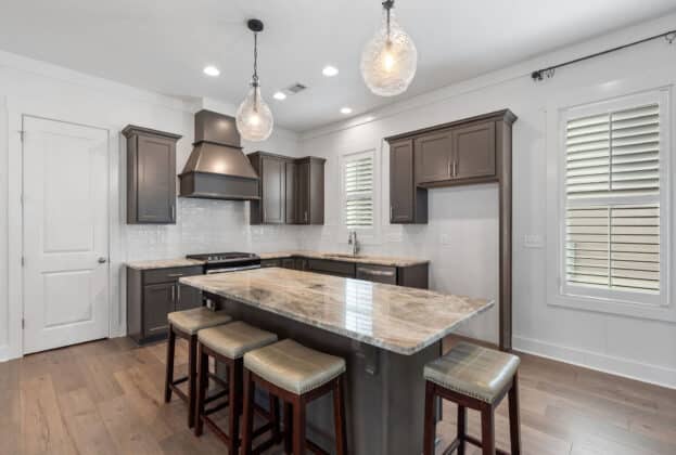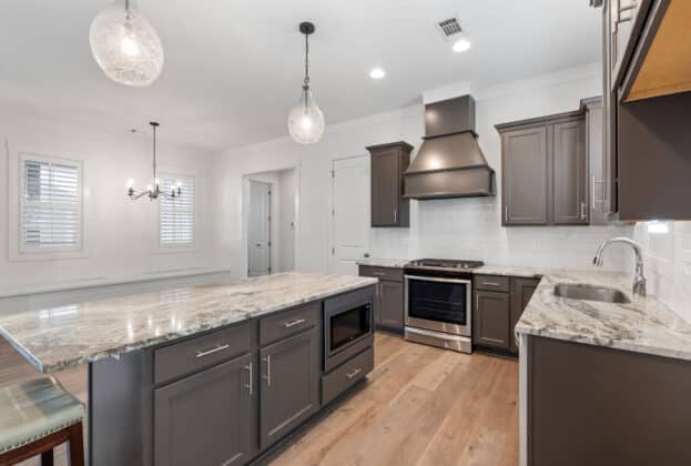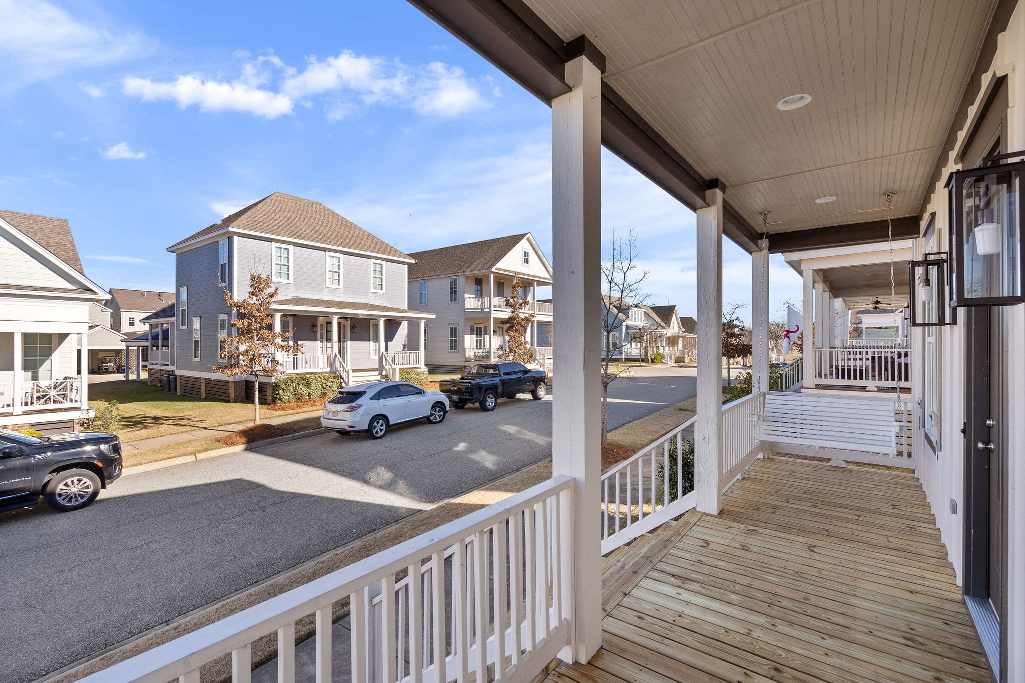 Welcome to this beautiful retreat at The Waters, where an amazing interior layout and unmatched outdoor living come together to create the perfect place to call home. This stunning residence offers 3 spacious covered outdoor living areas totaling 783 square feet, thoughtfully designed to blend relaxation, entertainment and privacy! This one makes a design statement on the street from the outside and you will love the inside just as much with its rich, warm, timeless color scheme! Step inside to find three bedrooms on the main level, a dedicated home office, and an open-concept living, dining, and kitchen area perfect for gathering with friends and family. The open kitchen is beautiful and functional with its soft close cabinets, stunning quartz countertops, and plenty of room to cook and entertain. Luxury vinyl plank flooring runs throughout the common spaces, combining style with durability. The private owner’s suite is your own serene escape featuring a soaker tub, fully tiled shower, and a very large walk in closet. This home has beautiful bathrooms placed throughout, each with quartz countertops and beautiful cabinetry. Sliding glass doors lead to the lower screened porch, an extension of the great room, and the perfect place to relax or grill. The upper screened porch is complete with a gas fireplace and ample room to relax, dine, watch tv or enjoy views of the surrounding streetscapes. This home also features spray foam insulation and a tankless water heater. Just steps away from the Blue Heron Pool Club, this location and home truly check all the boxes. Plus, it comes with all of the amenities The Waters offers such as 3 lakes, green space, 2 pools, pickleball and tennis courts, fishing piers and a boathouse with 4 boats. You’ll love golf cart rides to Town Center or just strolling the community. Don’t miss the chance to own 119 Forest Glen – a place that you will love to call home in Pike Road, AL.