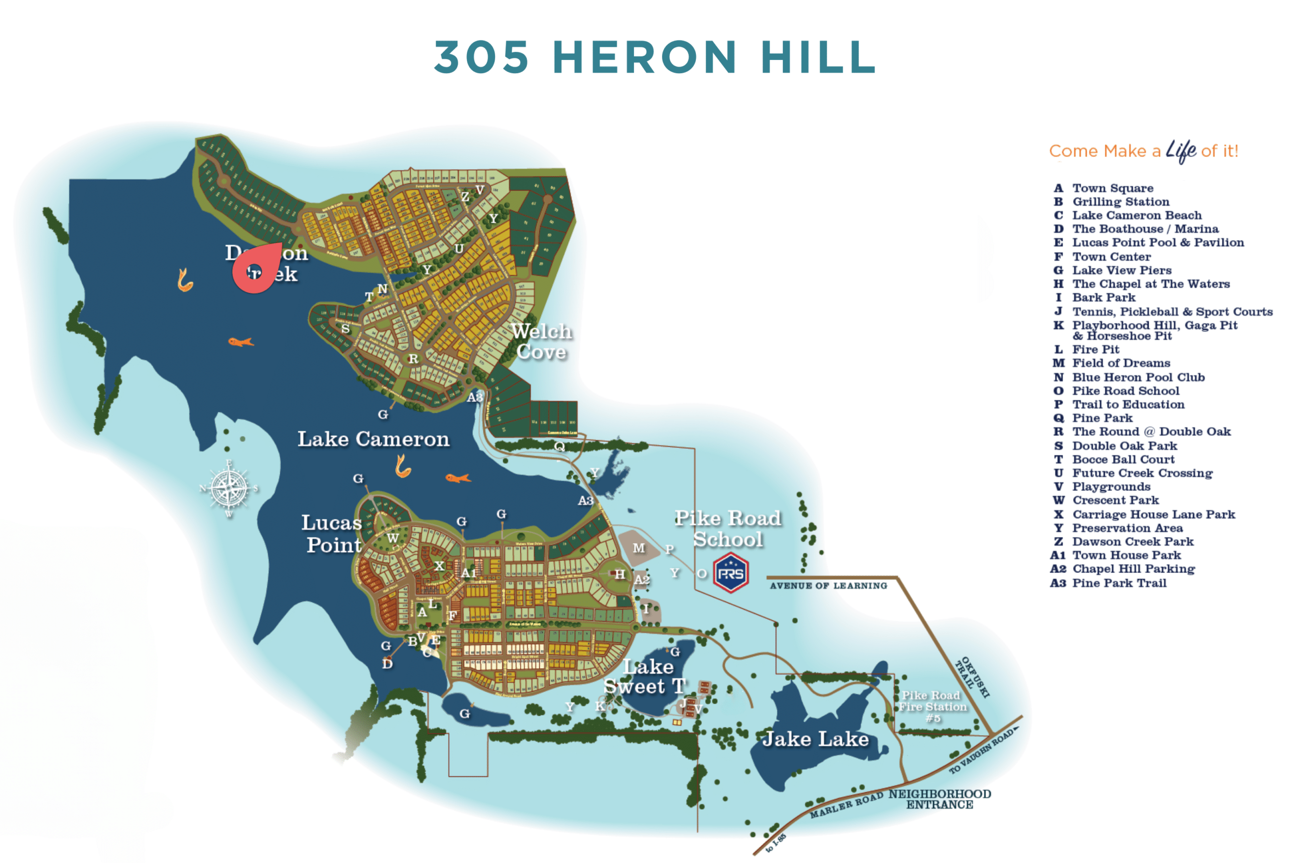 World-class fishing, boating, 2 swimming pools, 5 tennis courts, beach, dog park, town square, fire pit, soccer field, playborhood hill, bocce ball, pavilions, sport court, gaga pit, kayaking, canoeing, playgrounds, parks, Trail to Education (trail to school) and much, much more. Shop & Dine at our Town Center businesses! 2.5 miles off I-85, Exit 16 & less than 15 min. to Montgomery’s EastChase Shops & Chantilly Pkwy. Contact Pike Road School (334-420-5310) to verify schools & zoning. Seller has right to approve buyer’s mortgage lender. Come Make a Life of It. Make Your DREAM Vacation Your Everyday Life.