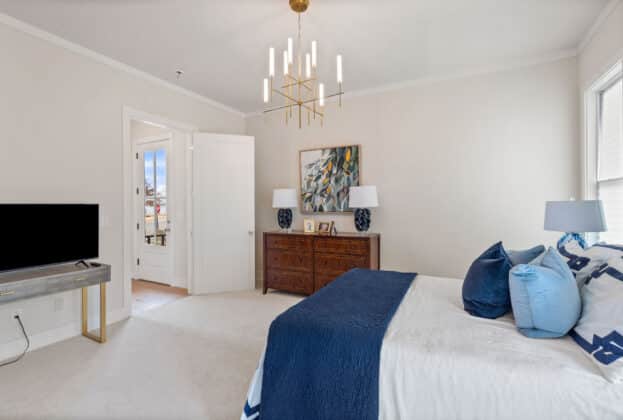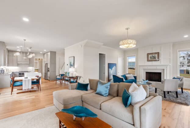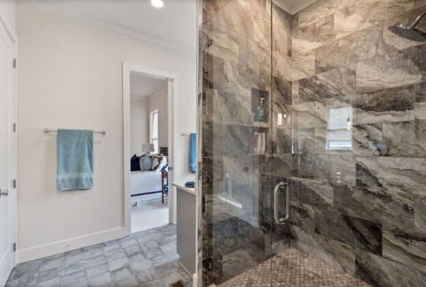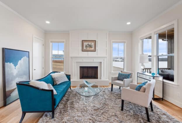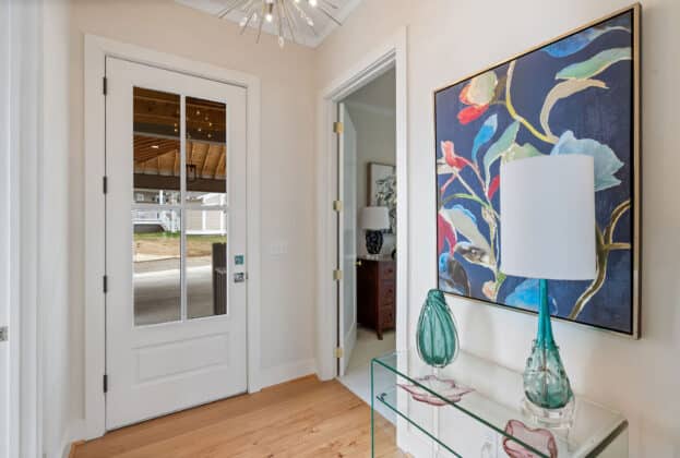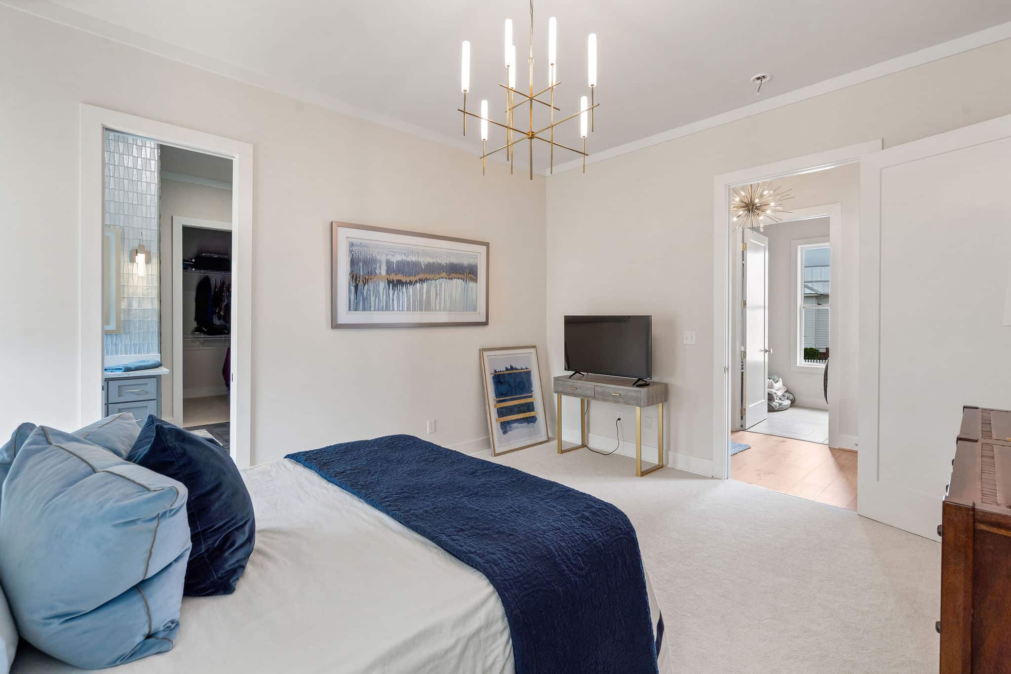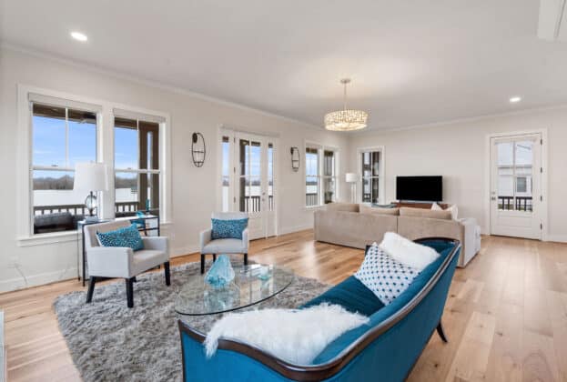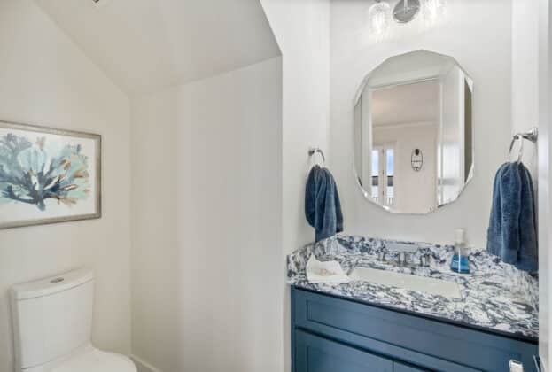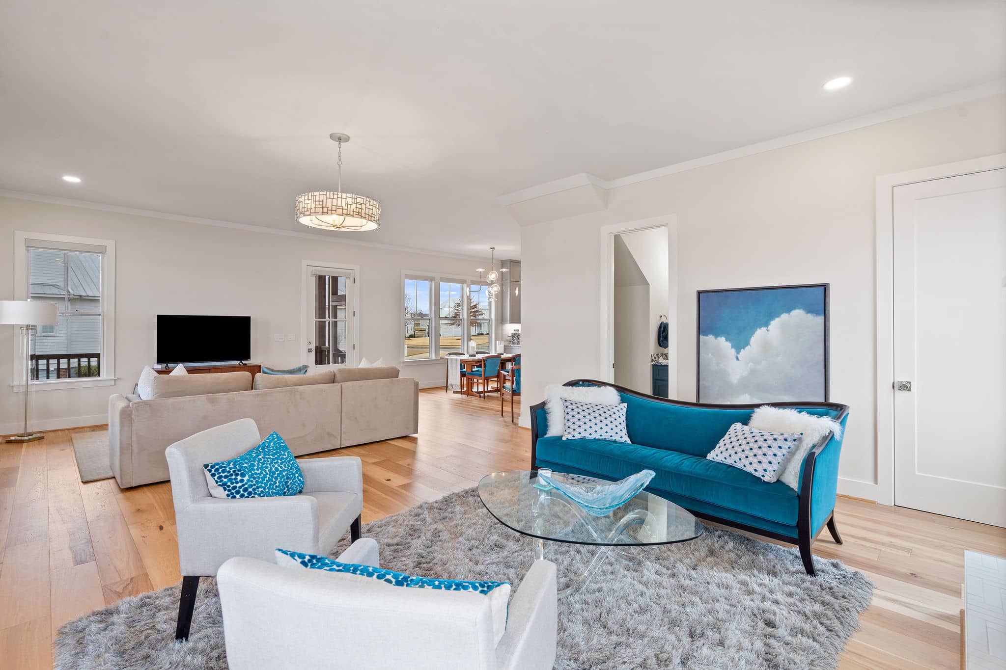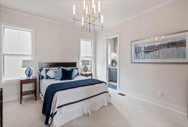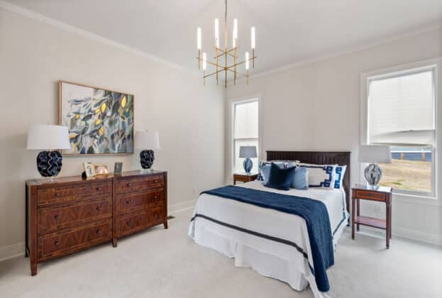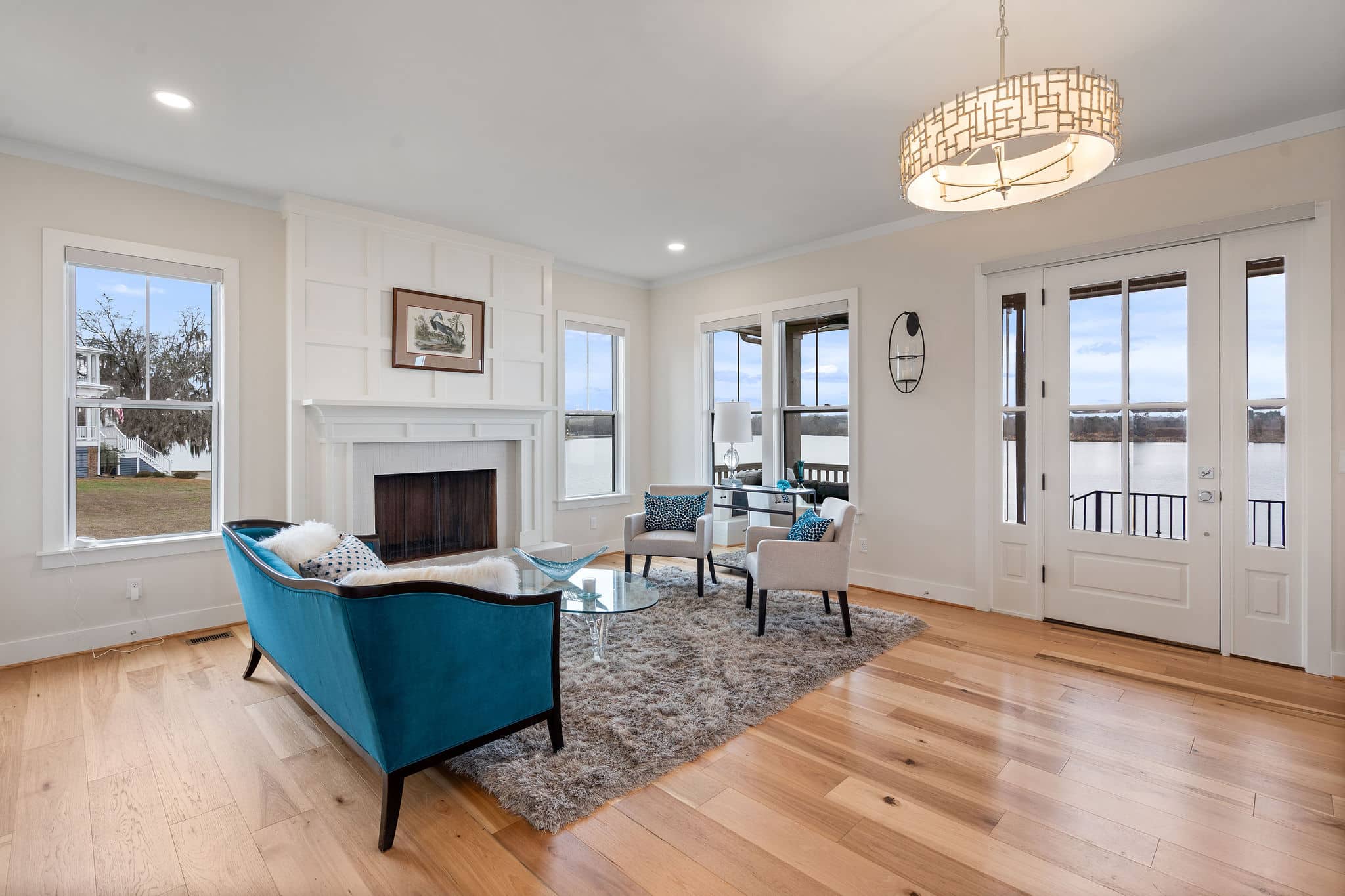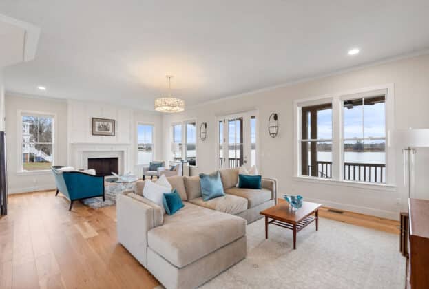 Perfectly positioned on the corner of Lucky Lane and Lake Cameron Drive, this custom-built 2025 lakefront home captures panoramic water views that are simply unforgettable. From the front and side porches to the living room, dining area, and kitchen, nearly every main living space is framed by picture-perfect views of Lake Cameron, creating a daily scene that feels like a permanent vacation. Beautiful hardwood floors flow throughout the home’s main areas while the bedrooms and baths offer comfort and privacy in all the right places. The magazine-worthy kitchen is truly the heart of the home, featuring floor-to-ceiling cabinetry with exceptional storage, gorgeous countertops, and a stunning island accented by a quartz waterfall on both sides. A double oven range makes entertaining effortless, while the open-concept design ensures you never miss a sunset over the water. The luxurious primary suite is a private retreat with designer tile wall accents, lighted mirrors, a breathtaking shower, and a massive walk-in closet that offers space for organization. Upstairs, a spacious bonus loft provides flexible living space, complemented by two additional bedrooms and a beautifully appointed bath with impressive tile and countertop finishes. Thoughtful exterior upgrades include professionally designed landscaping, a charming courtyard-style patio in the side yard, irrigation system, rain gutters, and spacious exterior storage. Move-in ready and practically new, this home offers a rare opportunity to own waterfront property at The Waters at an exceptional value—truly priced to sell and nearly impossible to replicate at this price point. Living at The Waters means embracing a lifestyle unlike any other, with access to lakes for fishing and boating, swimming pools, walking trails, pickleball and tennis courts, parks and greenspaces, plus a vibrant town center with civic spaces and local businesses. This is more than a home—it’s a front-row seat to lakefront living at its finest.
