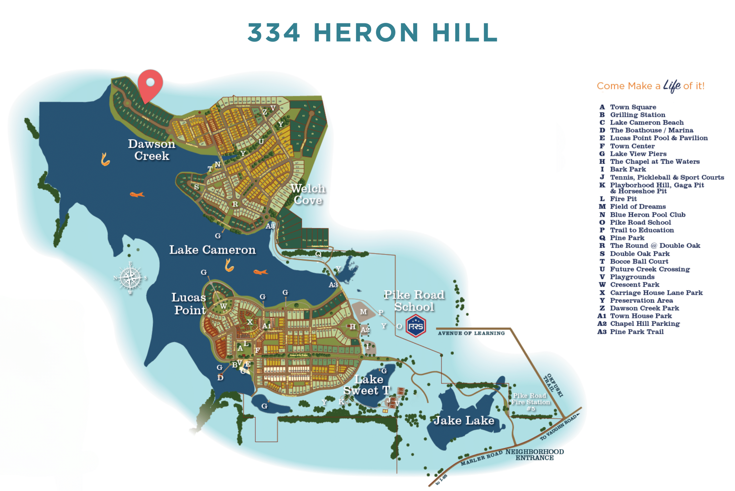 World-class fishing, boating, 2 swimming pools, 5 tennis courts, beach, dog park, town square, fire pit, soccer field, playborhood hill, bocce ball, pavilions, sport court, gaga pit, kayaking, canoeing, playgrounds, parks, Trail to Education (trail to school) and much, much more. Shop & Dine at our Town Center businesses! 2.5 miles off I-85, Exit 16 & less than 15 min. to Montgomery’s EastChase Shops & Chantilly Pkwy. Contact Pike Road School (334-420-5310) to verify schools & zoning. Seller has right to approve buyer’s mortgage lender. Come Make a Life of It. Make Your DREAM Vacation Your Everyday Life.
