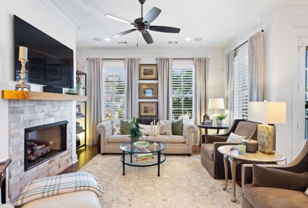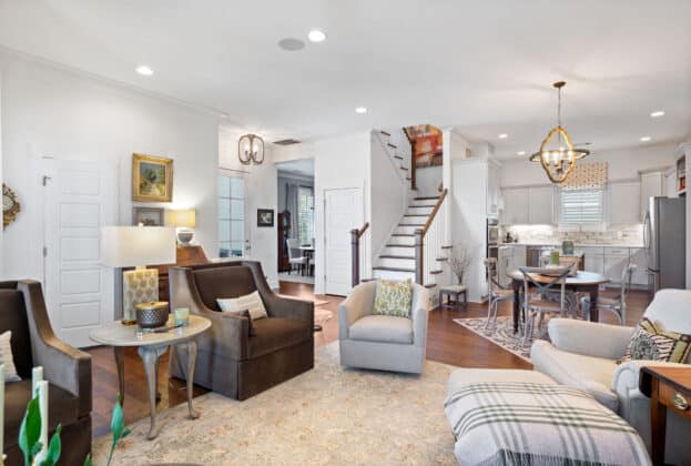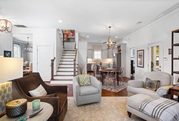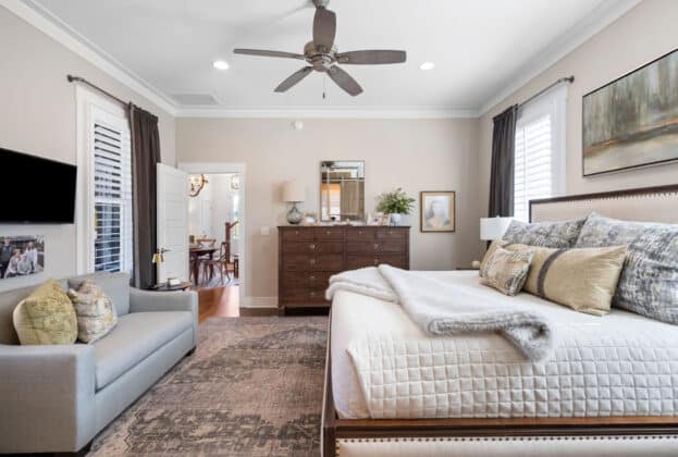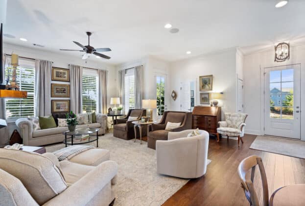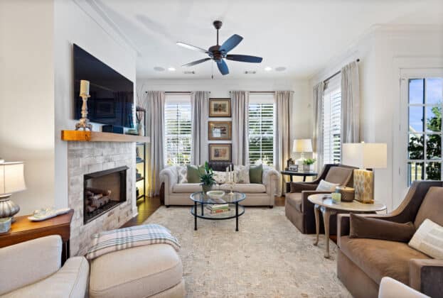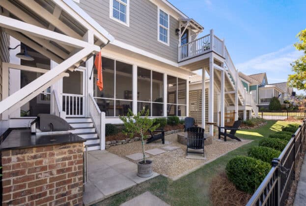 Welcome to this stunning one-owner home at The Waters in the Town of Pike Road—a professionally designed, former Parade of Homes model that captures timeless beauty and everyday comfort. Perfectly positioned on a picturesque corner lot near the Blue Heron Pool Club, this home enjoys peaceful views of Lake Cameron and the surrounding streetscapes. Double front porches invite you to relax and take in the scenery, while every inch of the home reflects meticulous care inside and out. Step inside to find an abundance of natural light streaming through large windows finished with plantation shutters, enhancing the open-concept great room centered around a cozy fireplace. The dining room features a stylish accent wall, and the kitchen, living, and dining spaces flow seamlessly together for entertaining and family living. Engineered hardwood flooring extends throughout the main living areas, with tiled bathrooms adding durability and elegance. The private owner’s suite offers a retreat of its own with a luxurious bath, while the upstairs layout includes an additional living space, three bedrooms, and two bathrooms—perfect for family or guests. Outdoor living shines here, with a spacious screened porch overlooking the beautiful streetscapes, plus a firepit area and built-in grilling space surrounded by lush landscaping and a fully fenced yard. An incredible bonus is the separate 424-square-foot apartment built out in 2024, featuring its own entrance, parking pad, complete kitchen, living area, bedroom, and bath with a stackable washer/dryer—ideal for guests, family, or short-term rental income. From its magazine-worthy interiors to its thoughtfully designed spaces, this home perfectly embodies The Waters lifestyle—charming, connected, and effortlessly elegant. Now is your chance to own this well loved, iconic home on the corner of Overbrook and Northlake streets. Make plans to tour it soon!