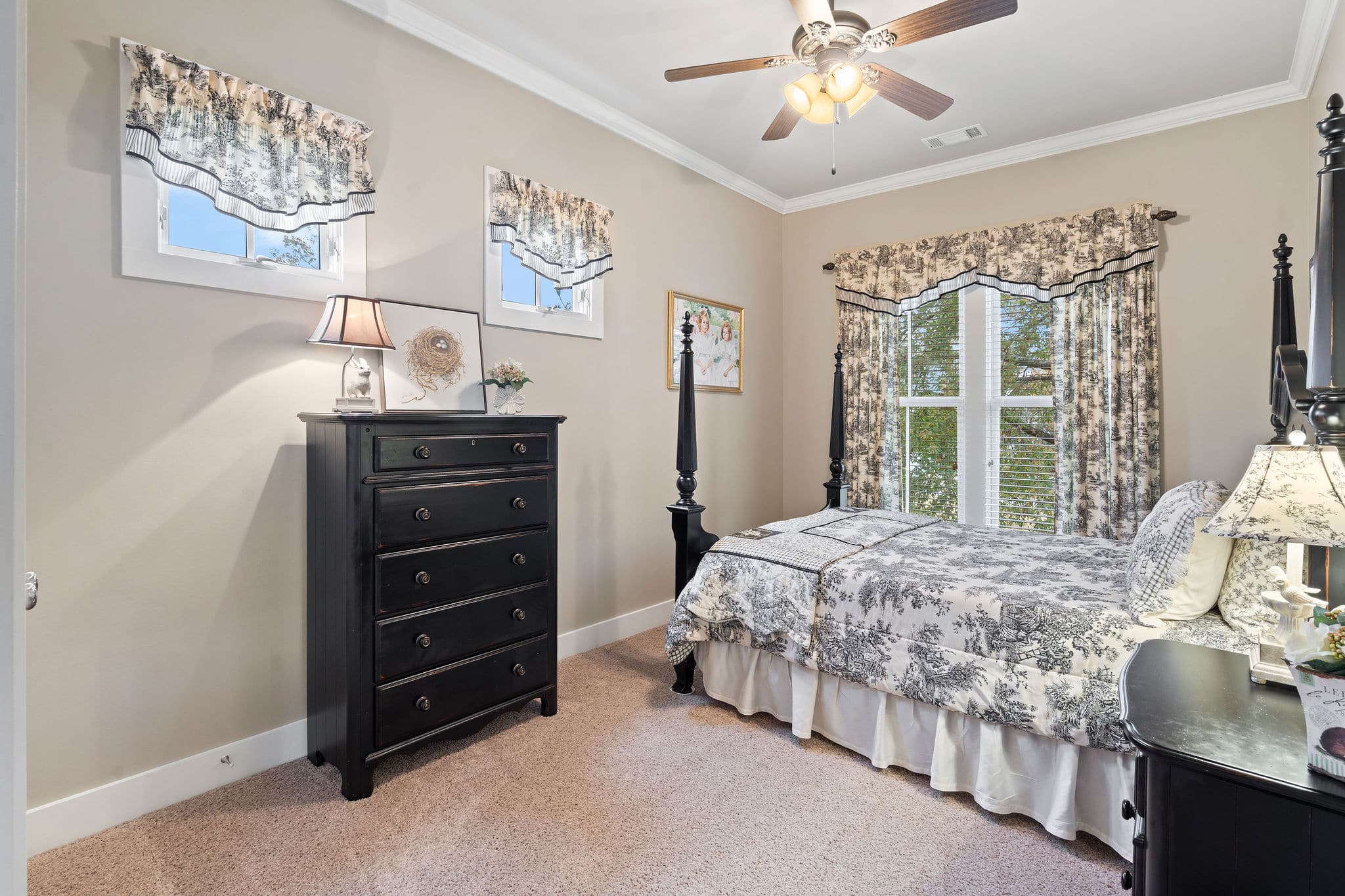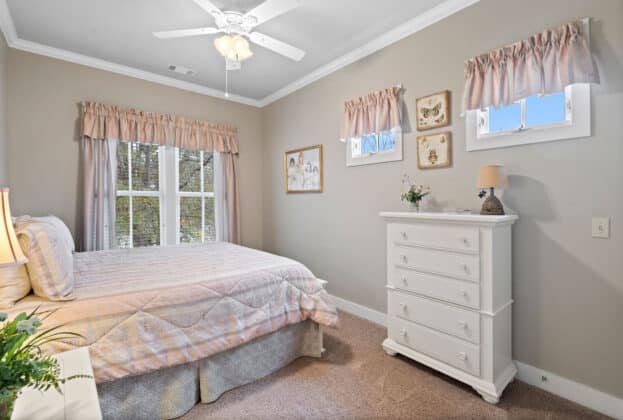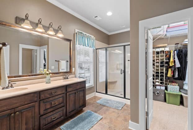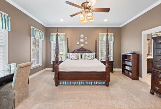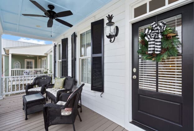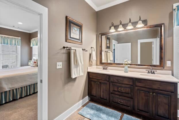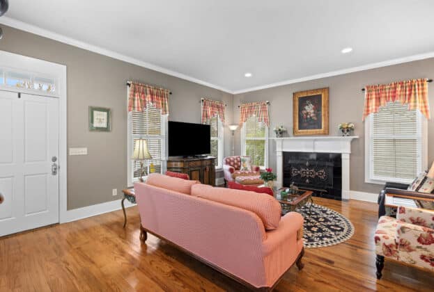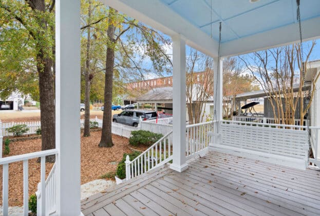 PORCH LIVING AT ITS FINEST! Nestled on Chapel Hill Street just off the Town Square, this meticulously maintained 3 bedroom, 2.5 bath custom home offers marvelous views of 200 acre Lake Cameron from its 2 front porches (one is off your bedroom!). Shaded by mature oak trees and landscaped beautifully, your private back porch overlooks the park behind the house – enabling you to enjoy the gracious outdoor living The Waters is known for. Designed by Allison-Ramsay Architects in Beaufort, SC, the Barclay II’s open plan with its generous spaces allows for ease of daily living or entertaining. The great room features a fireplace, tall ceilings and windows. Extensive moldings and special touches are found throughout the home. The open kitchen offers unobstructed views into the great room, the back porch and outdoor spaces beyond. Your breakfast area also doubles as a wonderful office space. Tall windows, recessed lighting and openness flood the main floor with natural light. Upstairs, your owners’ suite is quite large with a door to the upper balcony overlooking the lake. An ensuite bath with a HUGE shower, double vanity and walk in closet completes the suite. A hall bath and two guest rooms – both with large closets and windows overlooking the trees and ramble to the rear – complete the upstairs. Custom built, professionally landscaped and lived in lovingly, the owners have maintained the property beautifully. Maintenance records are available upon request. Enjoy all The Waters has to offer with its 200 acre Lake Cameron, Town Square and Town Center businesses, pools, parks and more. Seller reserves the right to approve Buyer’s lender.