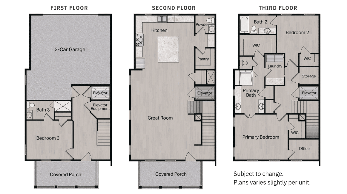 Designed for everyday living and easy entertaining. Estimated square footage – 2405-2499 per unit.